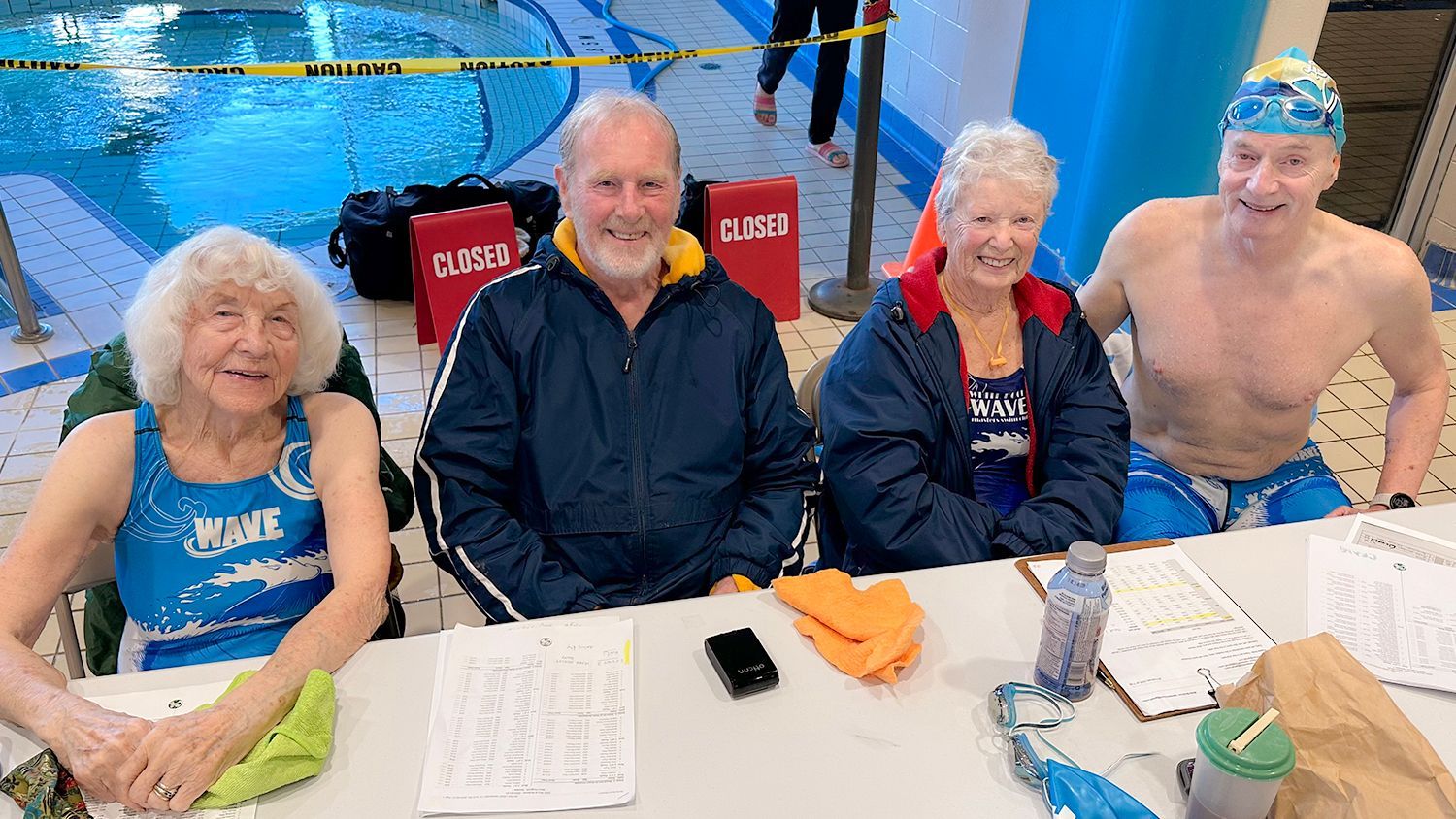 For competition, your age is taken as of December in the year you are competing. We have swimmers competing on our team well into their 80s, and Betty, our oldest competitor, is 101 this year. In Canada, you must be at least 18 to participate in the Masters swimming program. We currently have approximately 90 members on our roster.